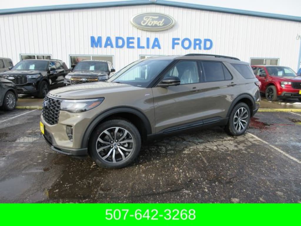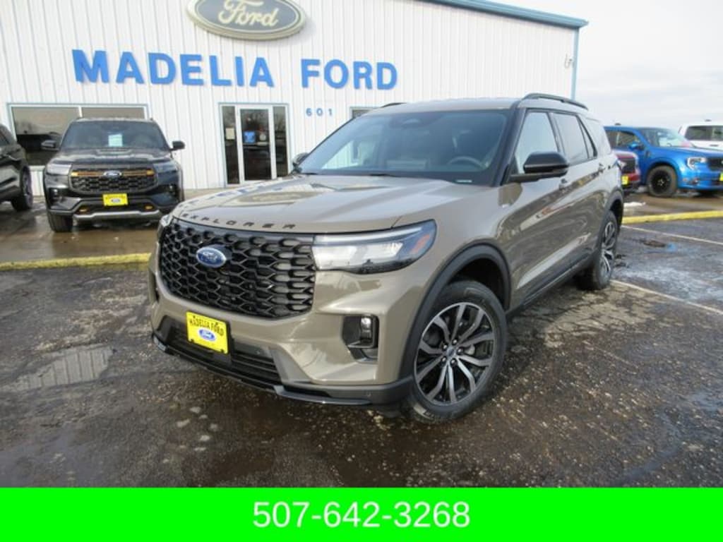 Marsh Gray 2026 Ford Explorer ST-Line 4WD 10-Speed Automatic 2.3L EcoBoost I-4 This Ford Explorer is well equipped and includes these key features and benefits, Explorer ST-Line, 4WD, Equipment Group 300A Standard Package, Heated Unique Cloth Captain's Chairs, Radio: B&O Sound System by Bang and Olufsen, SecuriCode Keyless Entry Keypad, Wheels: 20" Ebony-Painted Machined Aluminum.