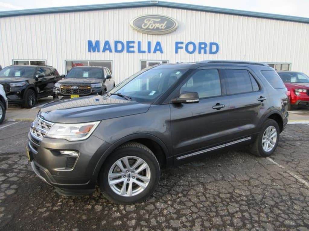 Madelia Ford is proud to present you with another True Market Priced Pre-Owned Vehicle. This 2018 Ford Explorer XLT is loaded with the following Factory Options:Comfort Package (Leather Heated Bucket Seats), Driver Connect Package (2 Driver Configurable 4.2" Color LCD Displays, Auto-Dimming Rear-View Mirror, SYNC 3 Communications & Entertainment System, and SYNC Connect), Equipment Group 202A (Dual-Zone Electronic Automatic Temperature Ctrl, Forward Sensing System, Heated Steering Wheel, LED Fog Lamps, Power & Heated Glass Sideview Mirrors, Power Liftgate, Radio: AM/FM Stereo w/7 Speakers, Rear Bumper Step Pad, and Remote Start System), Ford Safe & Smart Package (Adaptive Cruise Control & Fwd Collision Warning, Auto High-Beam Headlights, BLIS Blind Spot Information System, Lane-Keeping System, and Rain-Sensing Wipers (Front Only)), Explorer XLT, 4WD, 3.65 Axle Ratio, 3rd row seats: split-bench, 4-Wheel Disc Brakes, 6 Speakers, ABS brakes, Air Conditioning, Alloy wheels, AM/FM radio: SiriusXM, AM/FM Stereo, Brake assist, Bumpers: body-color, Compass, Delay-off headlights, Driver door bin, Driver vanity mirror, Dual front impact airbags, Dual front side impact airbags, Electronic Stability Control, Emergency communication system: 911 Assist, Exterior Parking Camera Rear, Four wheel independent suspension, Front anti-roll bar, Front Bucket Seats, Front Center Armrest, Front reading lights, Fully automatic headlights, Heated door mirrors, Illuminated entry, Knee airbag, Leather steering wheel, Low tire pressure warning, Occupant sensing airbag, Outside temperature display, Overhead airbag, Overhead console, Panic alarm, Passenger door bin, Passenger vanity mirror, Power door mirrors, Power driver seat, Power passenger seat, Power steering, Power windows, Rear air conditioning, Rear anti-roll bar, Rear Parking Sensors, Rear reading lights, Rear seat center armrest, Rear window defroster, Rear window wiper, Remote keyless entry, Roof rack: rails only, Security system, Speed control, Speed-sensing steering, Speed-Sensitive Wipers, Split folding rear seat, Spoiler, Steering wheel mounted audio controls, SYNC Communication & Entertainment System, Tachometer, Telescoping steering wheel, Tilt steering wheel, Traction control, Trip computer, Variably intermittent wipers, and Wheels: 18" 5-Split-Spoke Sparkle Silver-Painted.