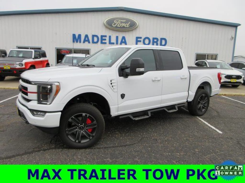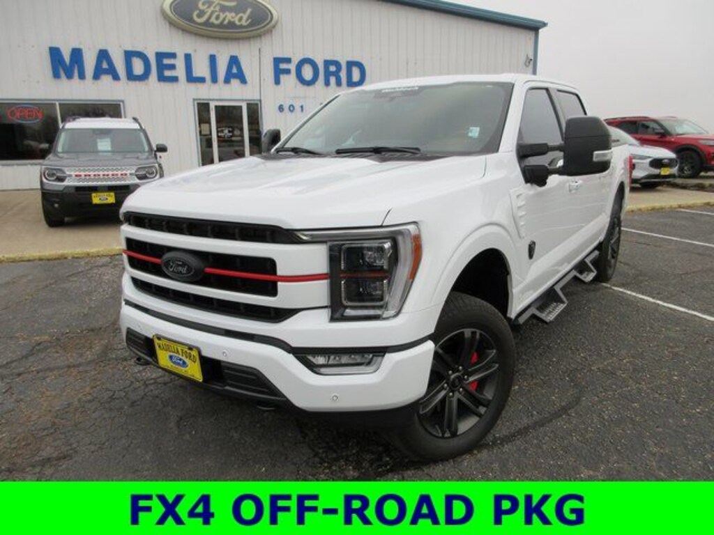 Madelia Ford is proud to present you with another True Market Priced Pre-Owned Vehicle. This 2023 Ford F-150 Lariat is loaded with the following Factory Options:Bed Utility Package (BoxLink, LED Box Lighting, Power Tailgate, and Tailgate Step w/Tailgate Work Surface), Equipment Group 502A High (2nd Row Heated Seats, LED Projector w/Dynamic Bending Headlamps, Power Tilt/Telescoping Steering Column w/Memory, Rain-Sensing Wipers, and Wireless Charging Pad), Ford Co-Pilot360 Assist 2.0 (Connected Built-In Navigation, Evasive Steering Assist, Intelligent Adaptive Cruise Control w/Stop & Go, Intersection Assist, and Speed Sign Recognition), FX4 Off-Road Package (Hill Descent Control, Monotube Rear Shocks, Off-Road Tuned Front Shock Absorbers, and Rock Crawl Mode), Lariat Sport Appearance Package (Accent-Color Angular Step Bars, Body-Color Front & Rear Bumpers, Box Side Decals, Chrome Single-Tip Exhaust, and Dark 2-Bar & 1 Minor Bar Style Grille), Max Trailer Tow Package (Class IV Trailer Hitch Receiver, Extended Range 36 Gallon Fuel Tank, Integrated Trailer Brake Controller, and Pro Trailer Backup Assist & Pro Trailer Hitch Assist), F-150 Lariat, 3.5L PowerBoost Full-Hybrid V6, 4WD, Electronic Locking w/3.73 Axle Ratio, Garage door transmitter, Navigation system: Connected Navigation, Twin Panel Moonroof, Wheels: 20" 6-Spoke Dark Alloy Painted Aluminum, 360 Degree Camera, 4-Wheel Disc Brakes, 8 Speakers, ABS brakes, Adjustable pedals, Air Conditioning, AM/FM radio: SiriusXM with 360L, Auto High-beam Headlights, Auto Start-Stop Removal (DISC), Auto-dimming door mirrors, Auto-dimming Rear-View mirror, Automatic temperature control, Brake assist, Bumpers: chrome, Center High-Mounted Stop Lamp CHMSL Camera Removal, Compass, Delay-off headlights, Driver door bin, Driver vanity mirror, Dual front impact airbags, Dual front side impact airbags, Electronic Stability Control, Emergency communication system: SYNC 4 911 Assist, Exterior Parking Camera Rear, Front anti-roll bar, Front Bucket Seats, Front Center Armrest, Front dual zone A/C, Front fog lights, Front reading lights, Front wheel independent suspension, Fully automatic headlights, Heated door mirrors, Heated front seats, Heated steering wheel, Illuminated entry, Inclination/Intrusion Sensor Removal, Le