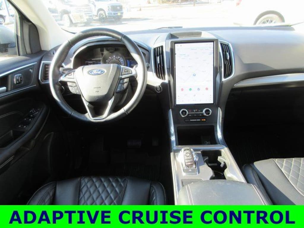 This Ford Edge is well equipped and includes these key features and benefits, Edge Titanium, AWD, ActiveX Trimmed w/FreeForm Sport Bucket Seats, Adaptive Cruise Control w/Stop & Go, Adaptive LED Headlamps, Auto-Dimming Driver's Sideview Mirror, Connected Navigation, Cooled Front Seats, Equipment Group 301A, Evasive Steering Assist, Front 180-Degree Camera w/Split View, Heated Rear Seats, Lane Centering, Power Tilt/Telescoping Steering Column w/Memory, Wheels: 20" Bright-Machined Aluminum.